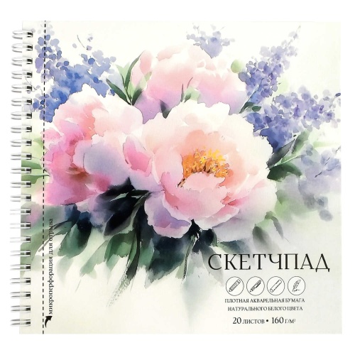 Скетчпад 195х195мм 20л, спираль 70145 Букет пионов