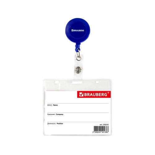 Код товара: 27560Бейдж 60*90мм горизонтальный, металлический зажим и булавка Brauberg 235711