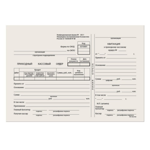 Бланк Приходный ордер А5/100л.уп. Attache 66998 офсет