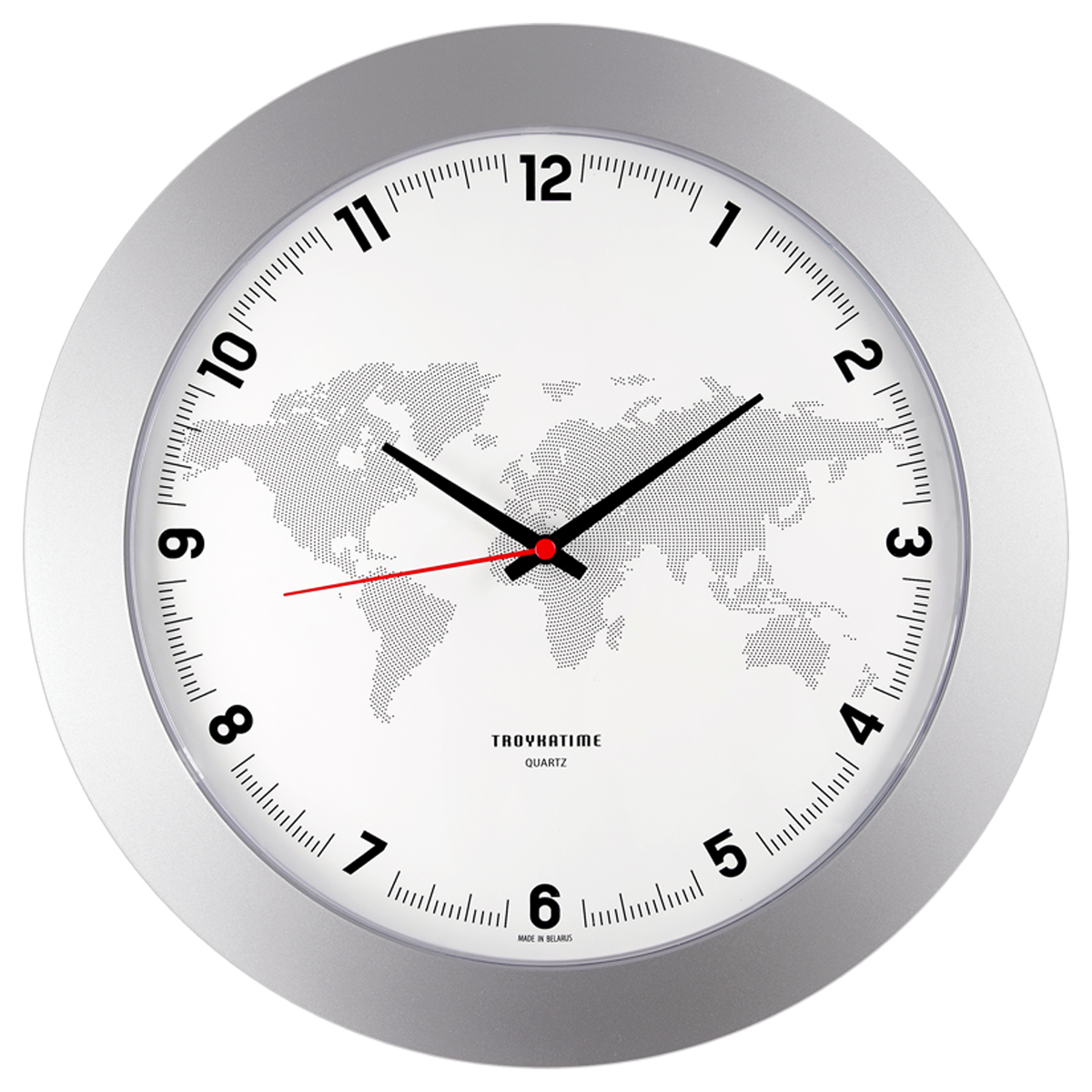 Часы настенные круглые Troyka 11170182 серебристая рамка