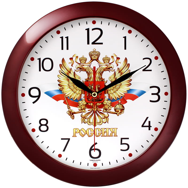 Часы настенные круглые Troyka 11131176 бордовая рамка