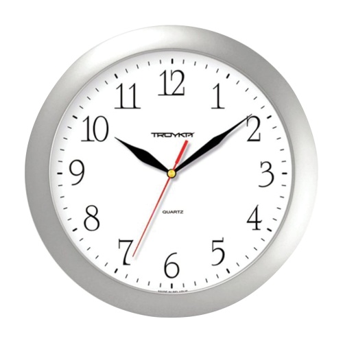 Часы настенные круглые Troyka 11170182 серебристая рамка