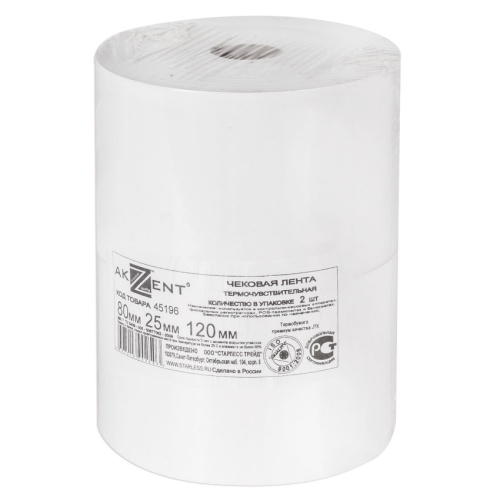 Код товара: 00-00106942Чековая лента 80*120*26 (намотка 150) термо Akzent (комплект 2шт)