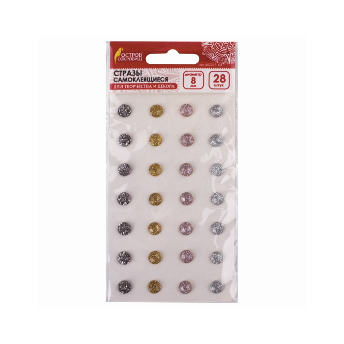Код товара: 00-00074773Декоративные стразы самоклеящиеся акриловые Остров Сокровищ 28 шт.,металлик, ассорти, 662233