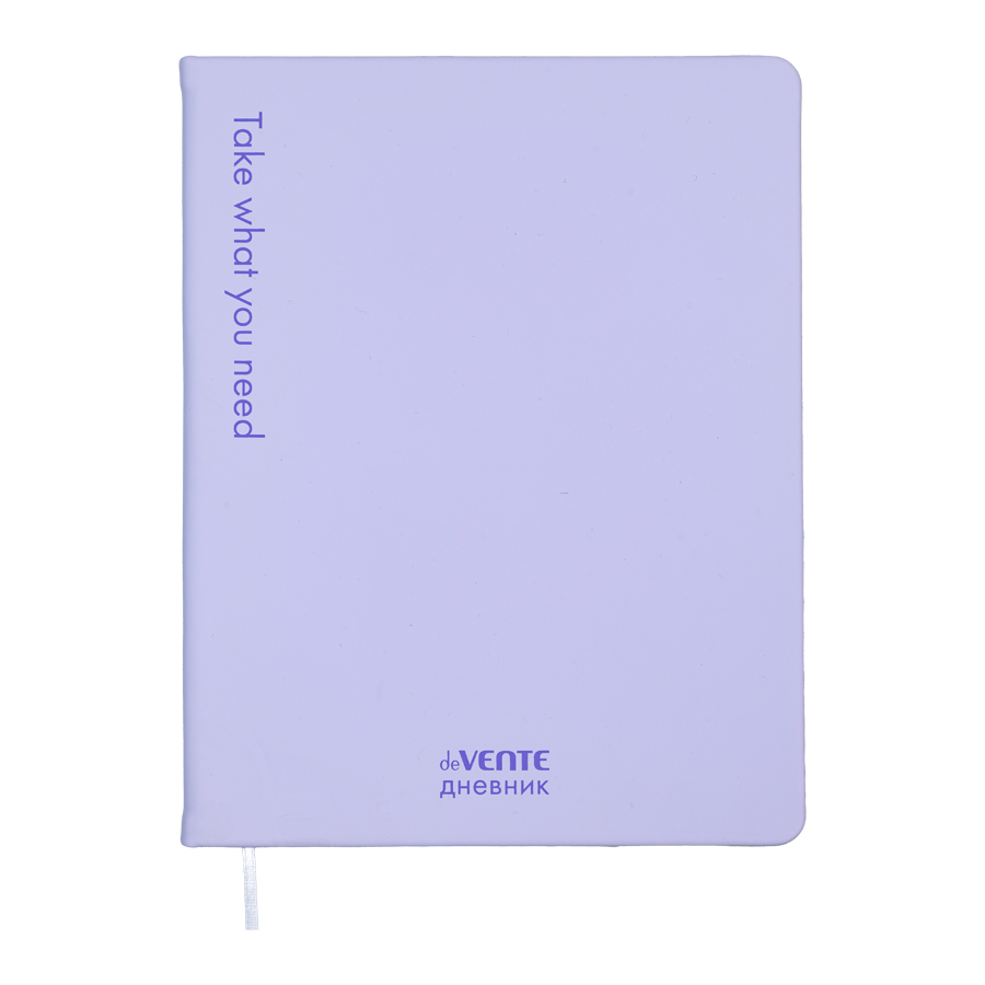 Дневник "deVENTE. Take what you need" универсальный блок, 48 листов, белая бумага 80 г/м2, печать в 1 краску, твердая обложка из искусственной кожи soft touch с поролоном, шелкография, 1 ляссе, сиреневый