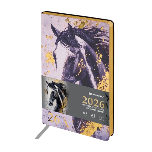 Код товара: 00-00112622Ежедневник 2026г А5 138*213мм 168л Brauberg Vista 117448, под кожу, Majestic horse