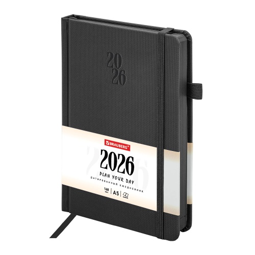 Код товара: 00-00075483Ежедневник 2026г А5 138*213мм 168л Brauberg 117505 Plain под кожу, с резинкой, черный