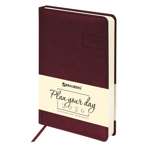 Код товара: 00-00114200Ежедневник 2026г А5 138*213мм 168л Brauberg Imperial 117060, бордо
