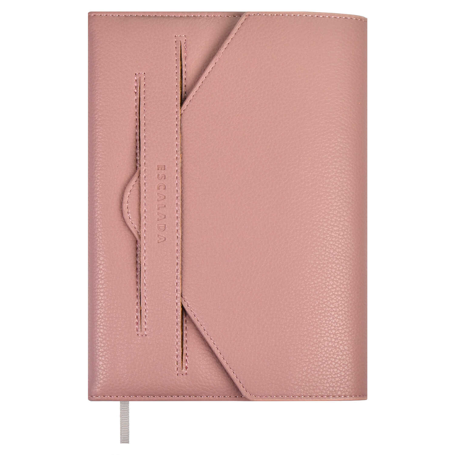 Ежедневник недатированный ESCALADA, А5, 160 л., арт. 67203/ 15 НАППА ЭКСТРА РОЗОВЫЙ (кожзам: 146x211 мм, твёрдый переплёт с поролоном, материал обложки: искусственная кожа "Наппа экстра"; способ крепления блока: ниткошвейный; декор: блинтовое тиснение; вн. блок: 160 л., кремовый офсет 70 г/м², печать в одну краску (линия), справочный материал: есть; перфорация углов блока: нет; закладка/-и: одно ляссе, каптал: есть; форзац: печать пантоном, особенности: клапан фигурный мягкий в декоративной петле; персонализация возможна: да; индивидуальная упаковка: ПЭТ-пакет)