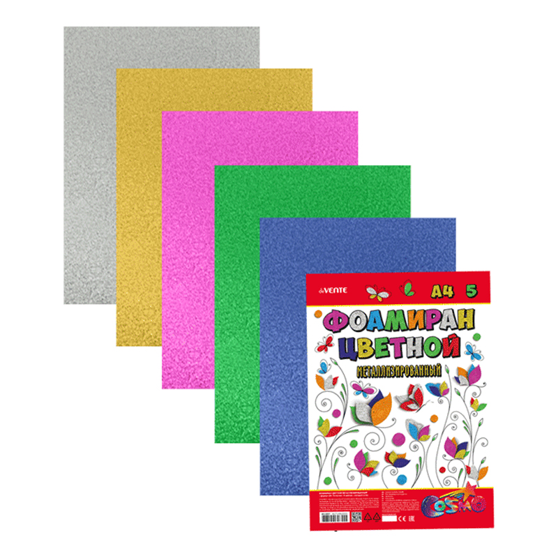 Код товара: 00-00070372Набор фоамирана цветного А4 5л 5цв deVENTE 8013807 металлизиров, толщина 2мм