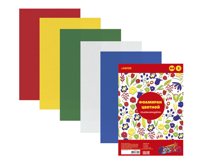 Код товара: 00-00114439Набор фоамирана цветного А4 5л 5цв deVENTE 8040778 самоклеящийся, толщина 2мм