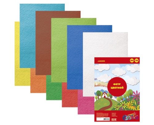 Набор фетра цветного А4 10л 10цв deVENTE 8040757, яркие цвета, толщина 2мм