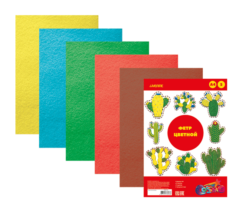 Код товара: 64181Набор фетра цветного А4 5л 5цв deVENTE 8040756, яркие цвета, толщина 2мм