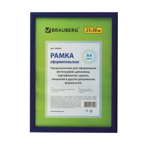 Фоторамка 21*30см Brauberg HIT2, синяя, стекло, 390943