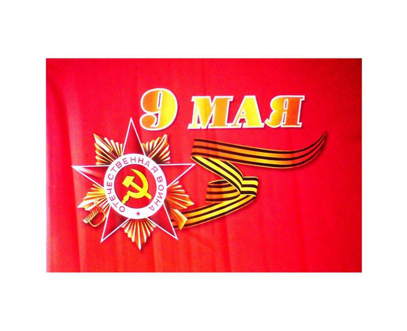 Флаг "9 МАЯ": прошит нитками по краю, карман для древка с петлями для крепления, материал-искусственный шёлк, цвет-красный, размер-90*145 см.