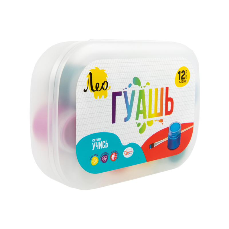 Гуашь 12цв 20мл Лео Учись LNGB-12 в пластиковом контейнере