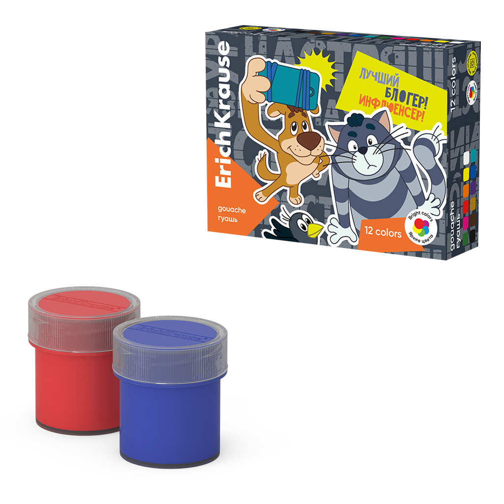 Гуашь 12цв 20мл ErichKrause 61070 Простоквашино