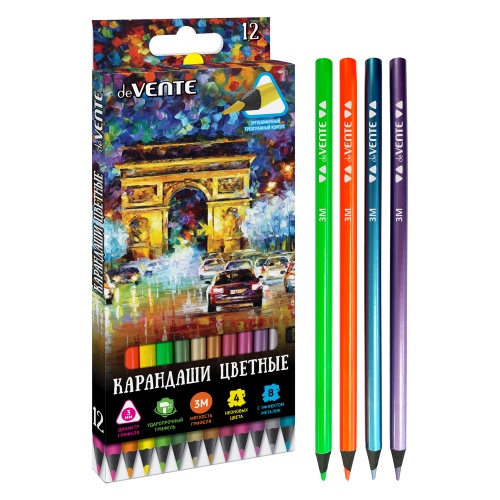 Код товара: 30561Цветные карандаши 12 цв. deVENTE 5022338 Triolino Ultra, трехгранные в металлич. пенале