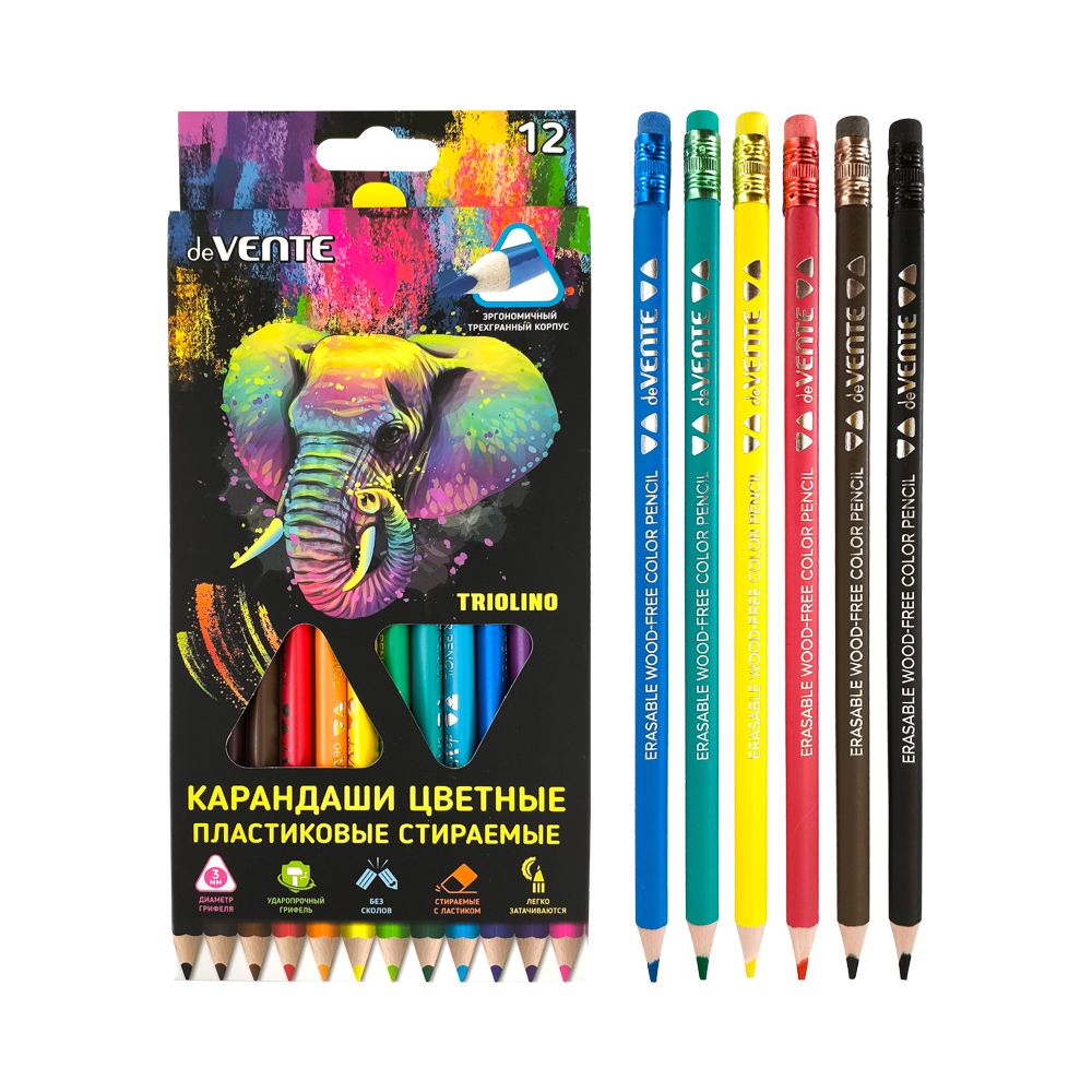 Код товара: 00-00104908Цветные карандаши 12 цв. deVENTE 5022550 Triolino Erase, трехгранные с ластиком