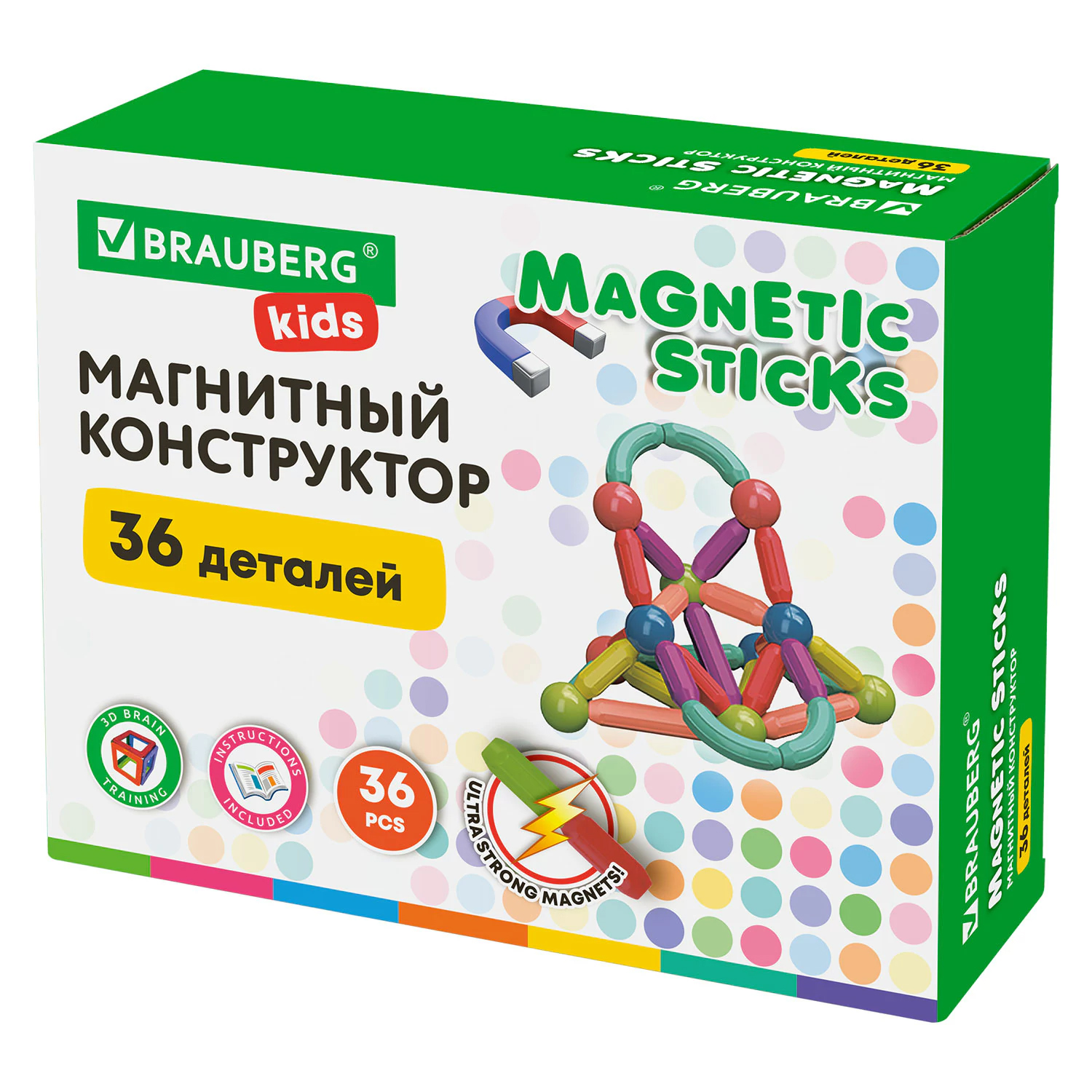 Код товара: 00-00098963Конструктор магнитный 36 деталей Brauberg Kids 665721 Magnetic Sticks