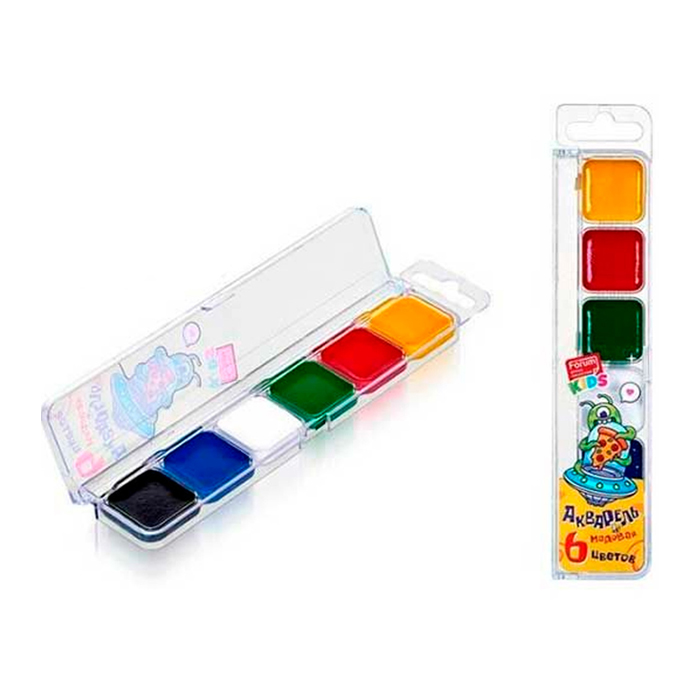 Код товара: 00-00110519Краски акварель медовая 6 цв. FORUM Office Collection Kids КОСМО, FA-EV-1006-Aln б/кисти