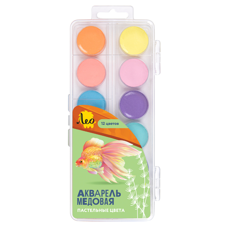 Код товара: 00-00100664Краски акварель медовая 12 цв. Лео Ярко LBPW-0112, без кисти (пастельные цвета)