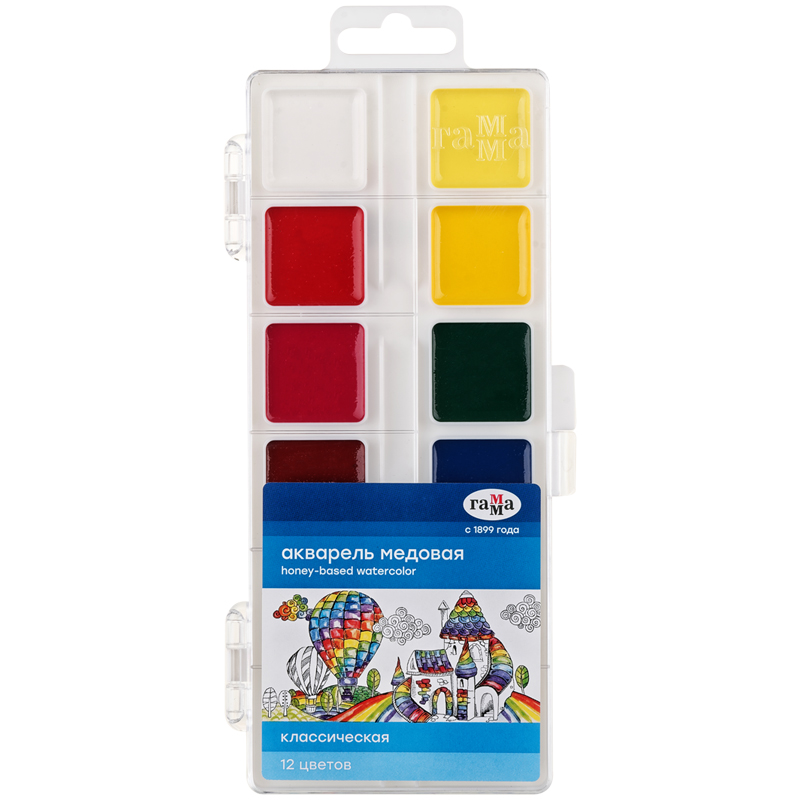 Код товара: 00-00107599Краски акварель медовая 12 цв. Гамма Классическая 1009194, без кисти