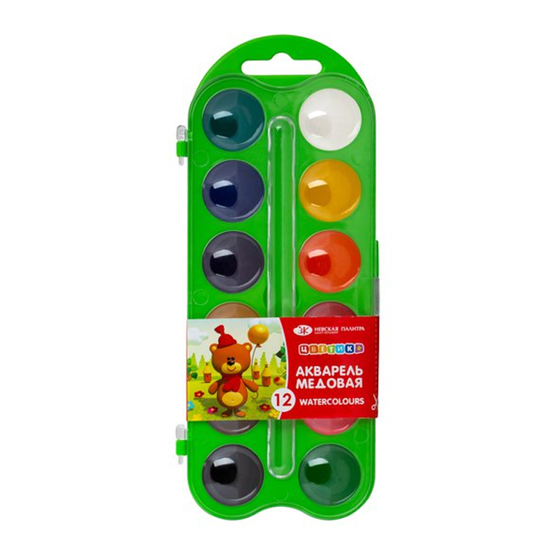 Код товара: 00-00096332Краски акварель медовая 12 цв. ЗХК Невская Палитра Цветик 2742189, без кисти