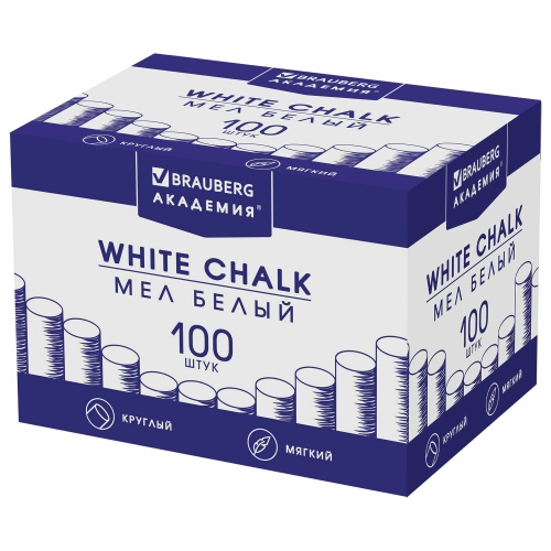 Мелки белые 100шт Brauberg 271146 круглый, мягкий