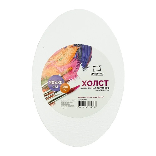 Код товара: 00-00109145Холст грунтованный на картоне Малевичъ 20х30см, 100% хлопок, Овал