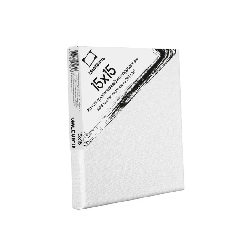 Код товара: 00-00097764Холст грунтованный на подрамнике Малевичъ 15*15см, грунт., 280гр, 100% хлопок мелкое зерно