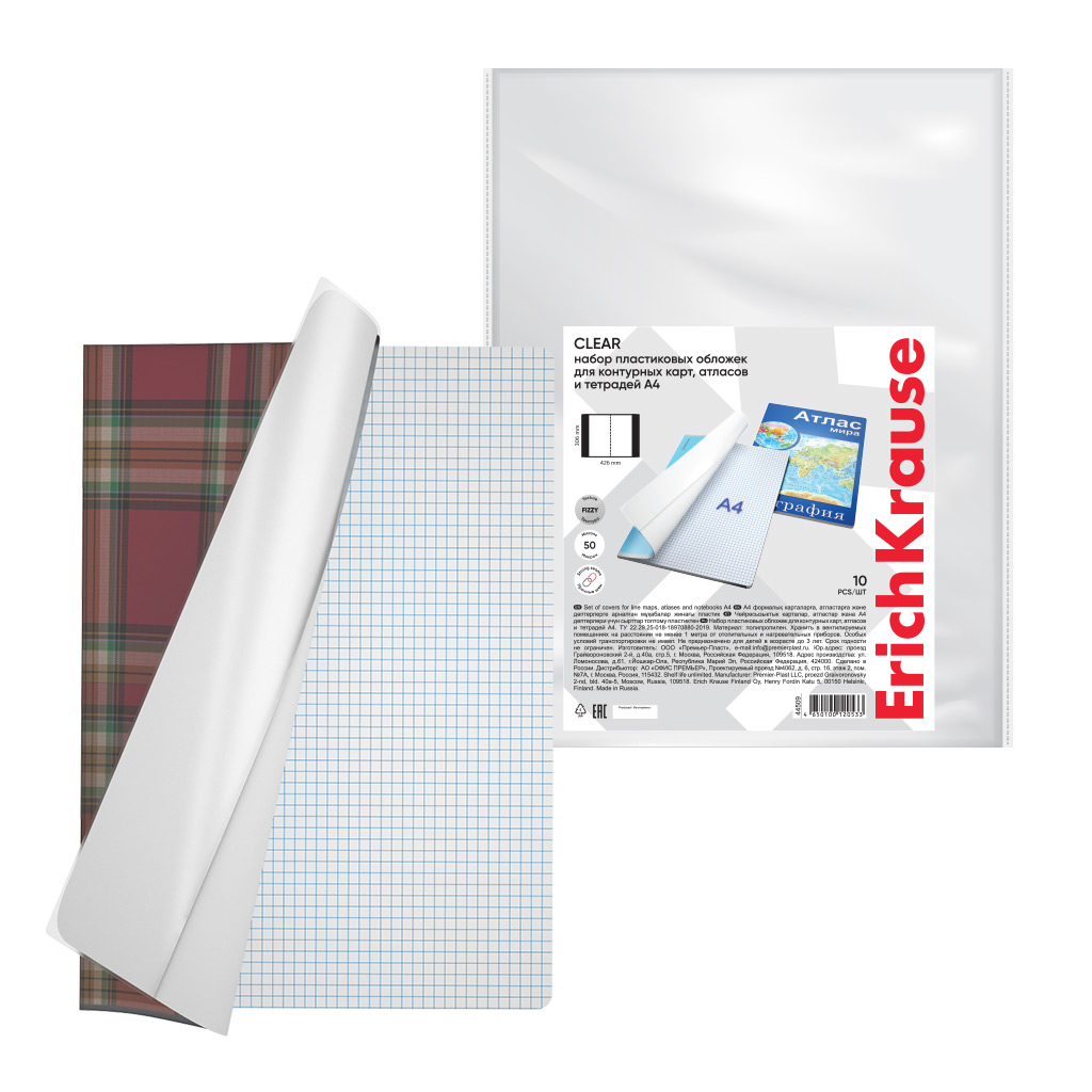 Обложка для контурных карт 306х426мм 50мкм ErichKrause Fizzy Clear 44509, 10 шт.