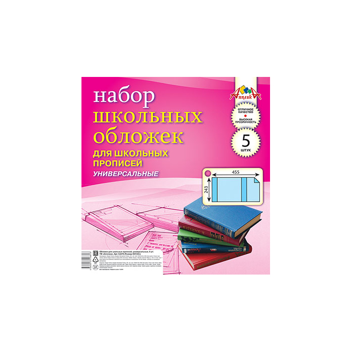 Код товара: 00-00116025Обложка для прописей и рабочих тетрадей 243х445 мм 110мкм Апплика C2470 (5шт)