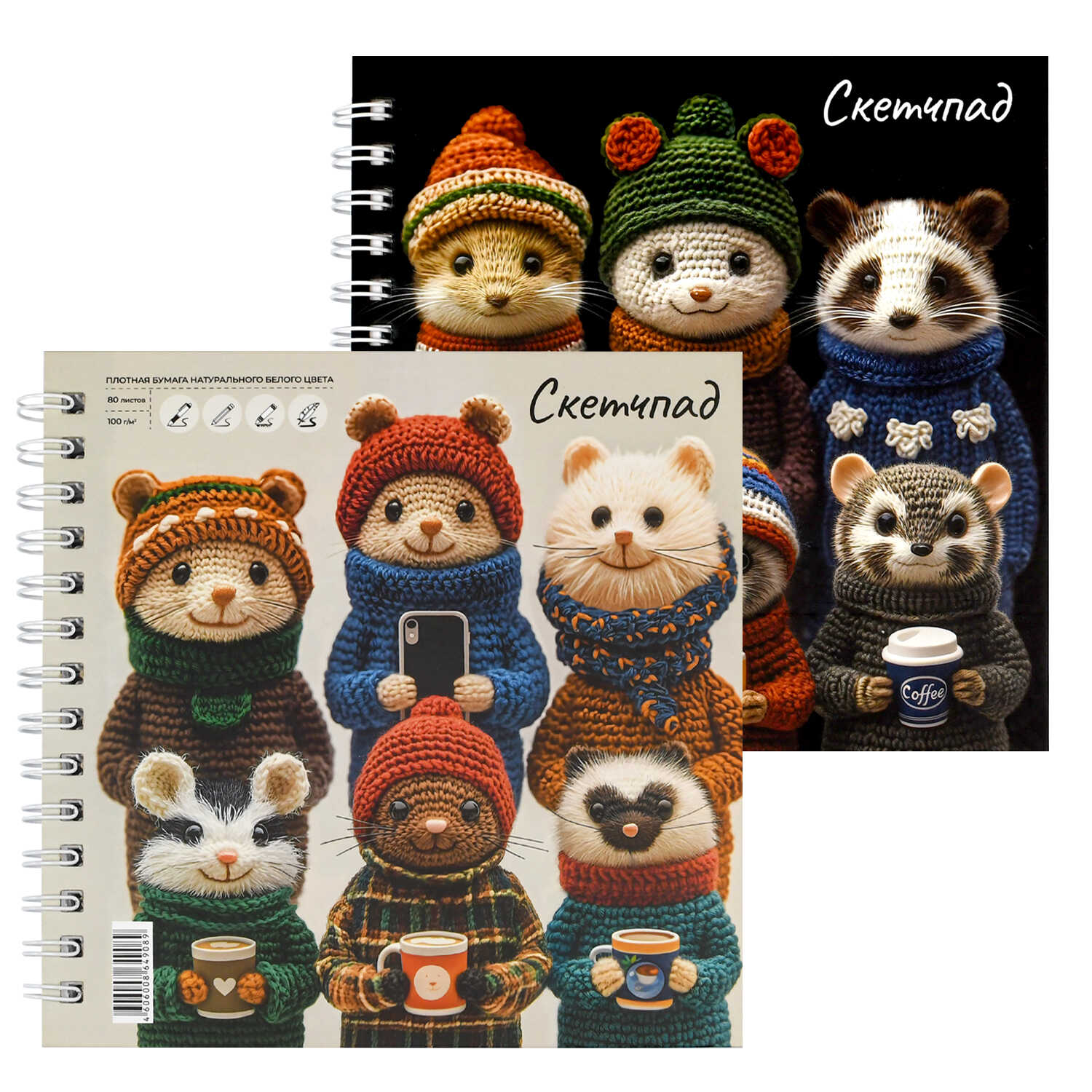 Скетчпад 195*195мм 80л твердая обложка 71629 Вязанные звери, белый офсет 100 г/м²