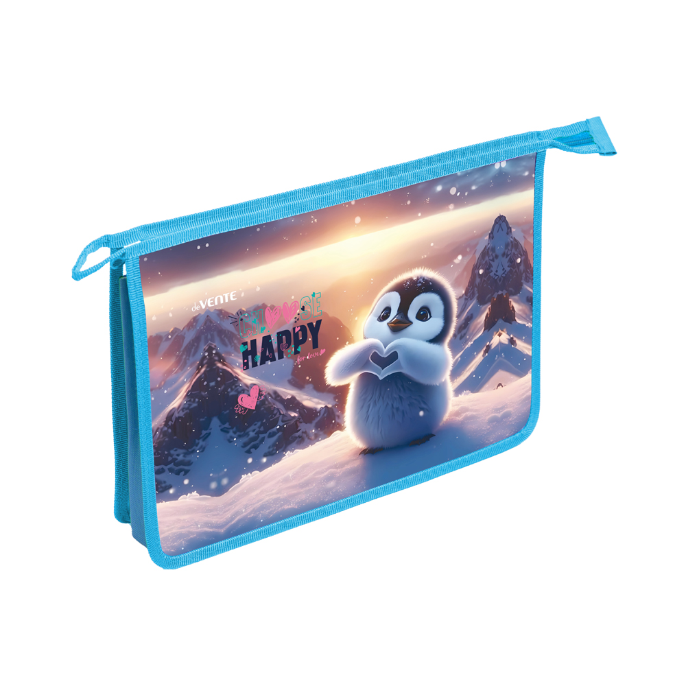 Код товара: 00-00105260Папка для тетрадей на молнии А4 deVENTE 8057554 Happy Pinguin с расширением