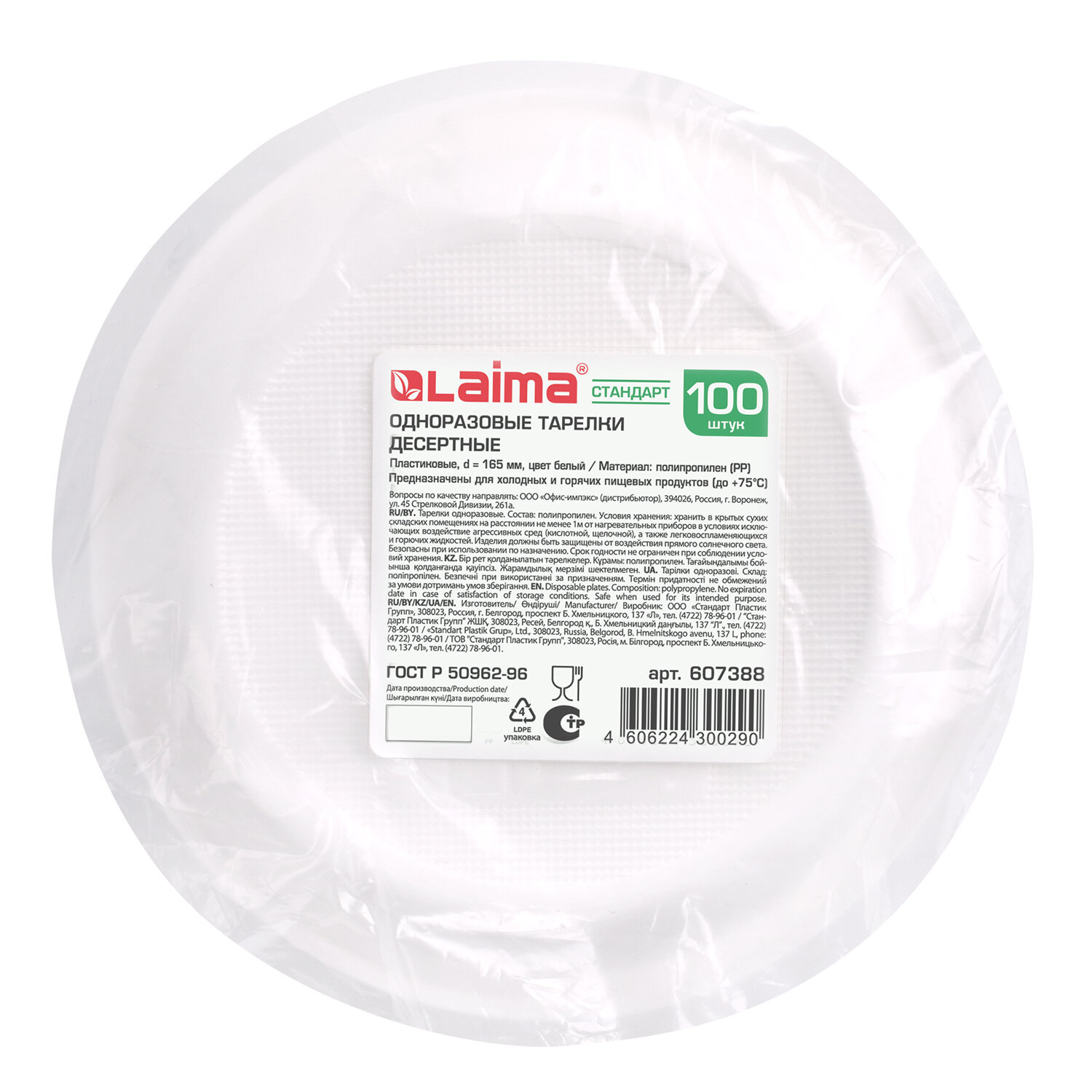 Код товара: 00-00114279Тарелка одноразовая LAIMA d=165мм (комплект 100шт) 607388, десертные