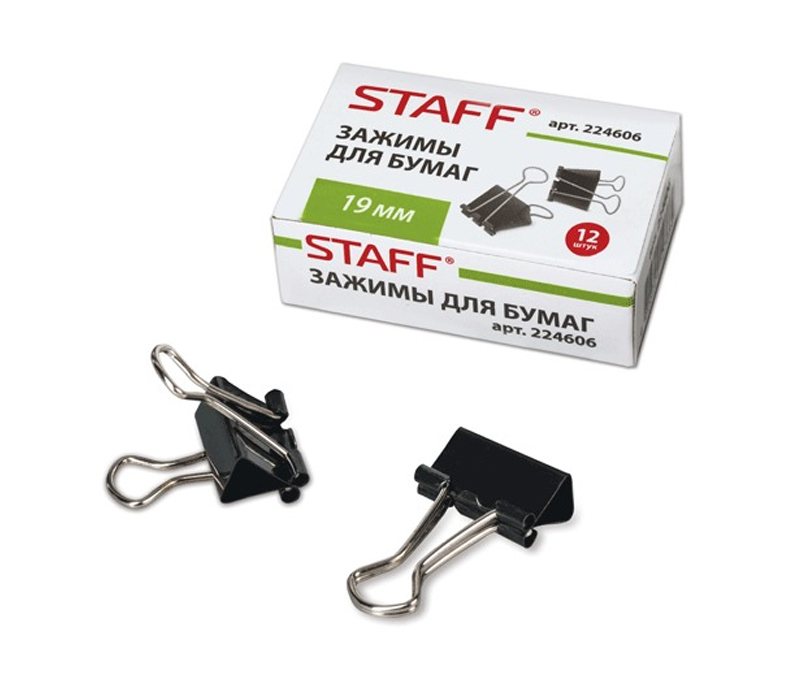 Зажим для бумаг 1,9см*12шт Staff 224606 черные