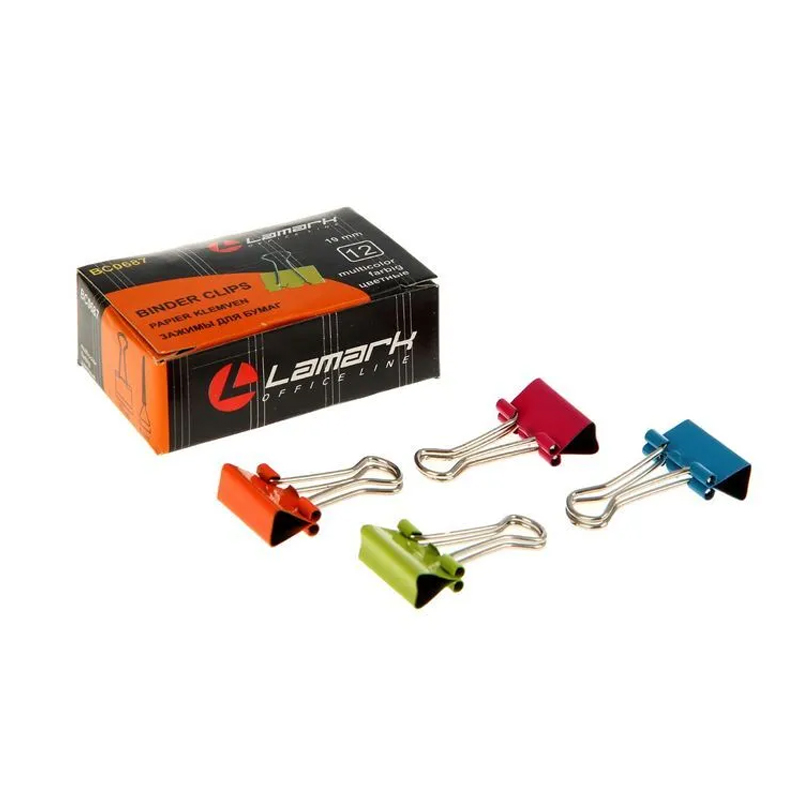Зажим для бумаг 1,9см*12шт Lamark ВС0687 цветные