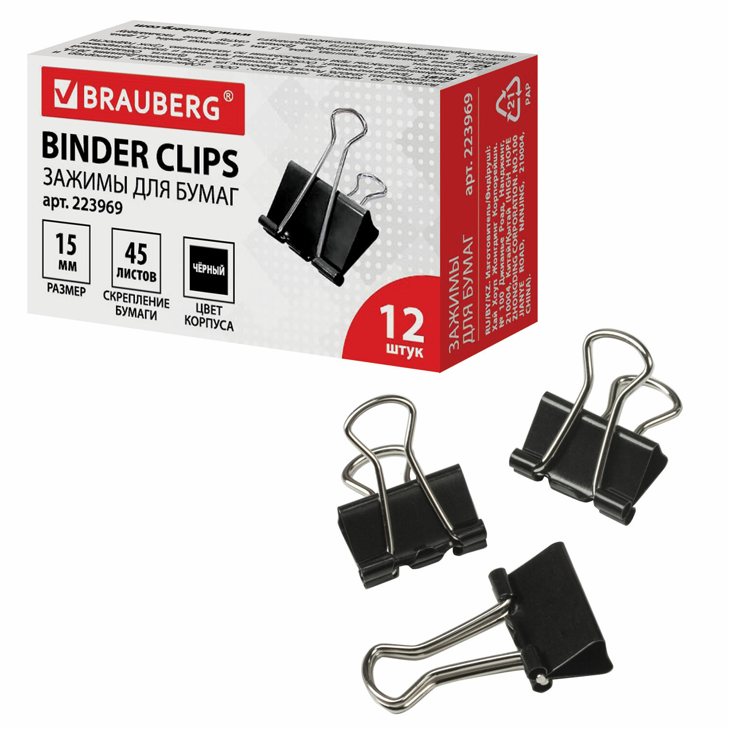 Зажим для бумаг 1,5м*12шт Brauberg 223969 черные