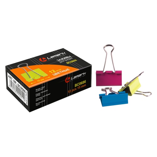 Зажим для бумаг 1,5см*12шт Lamark BC0686 цветные Неон