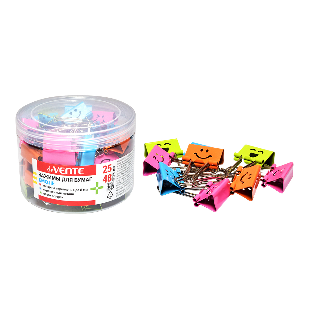 Зажим для бумаг 2,5см deVENTE 4131999 Смайлик ассорти