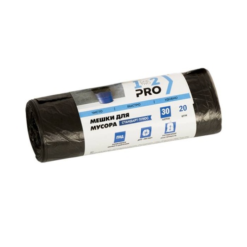 Код товара: 00-00107357Мешки для мусора 60л 20шт 1-2-Pro ММВ06030-20 60*70 см 30мкм ПВД