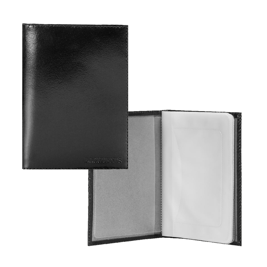Бумажник водителя выполнен из натуральной кожи. На внутреннем развороте 2 кармана из прозрачного пластика. Внутренний блок из прозрачного пластика для документов водителя (6 карманов). Отличительная черта: тиснение "documents". Внешний размер: 90 х 125.