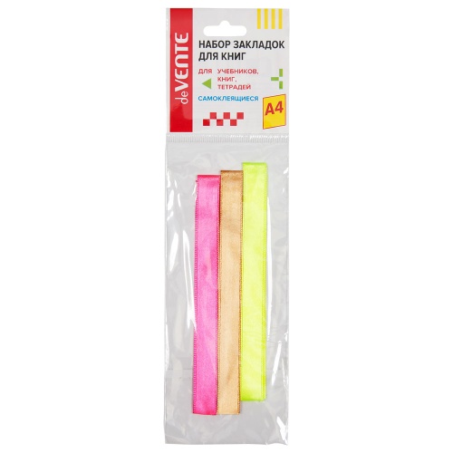 Код товара: 00-00107499Закладки-ляссе самоклеящиеся deVENTE А4, 3 широкие ленты, Neon, 8065915