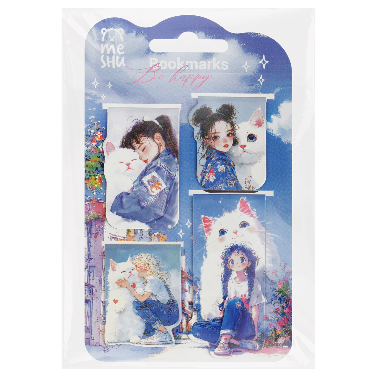 Код товара: 00-00079640Закладки магнитные (набор 4шт.) Meshu MS_58275 Милые котята, ламинация с блестками