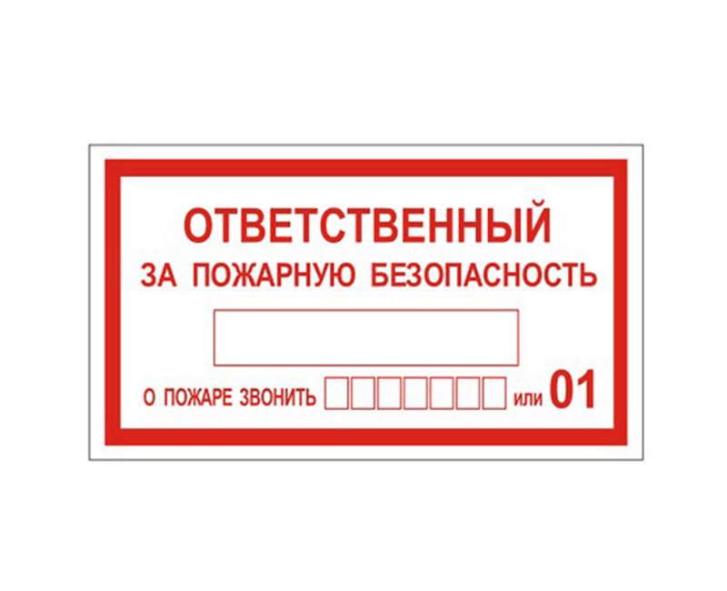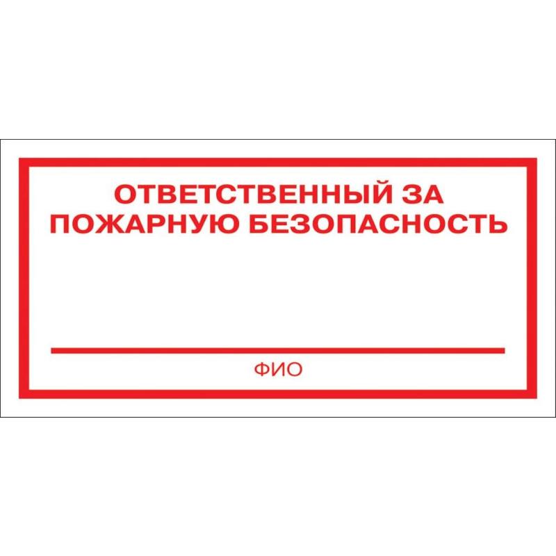 Код товара: 00-00088841Знак вспомогательный "Ответственный за пожарную безопасность" 250*140мм, самоклейка, 610049
